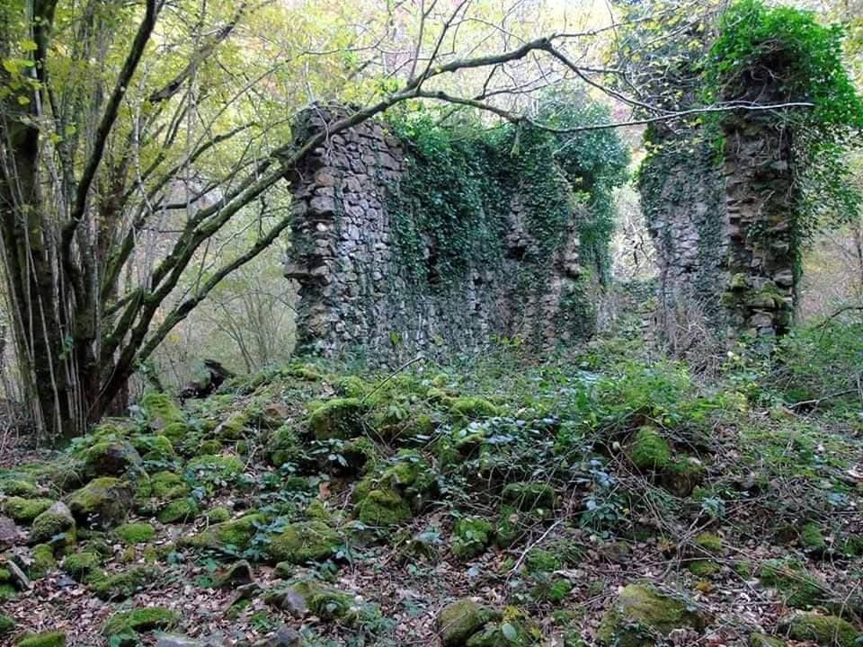 Ya en el boscoso, mágico y solitario valle de Meazuri, el camino atraviesa diferentes ruinas de edificios mineros, barracones y lavaderos, cercanos a las bocaminas y simas donde se extraía, desde la época de los romanos, hierro, plomo, zinc y florita, y que se conservan como parte del paisaje.