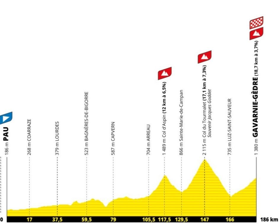 La etapa partirá desde Pau y a través de 186 kilómetros llegará hasta Gavarnie después de superar dos clásicos como el Aspin y el terrible Tourmalet.