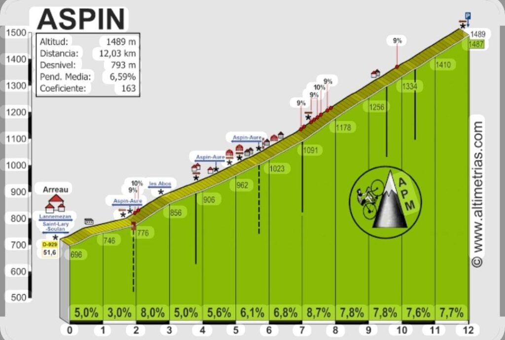 El Aspin tiene doce kilómetros con una media del 6,5% y pocos tramos realmente complicados aunque harán una bonita limpia del pelotón.