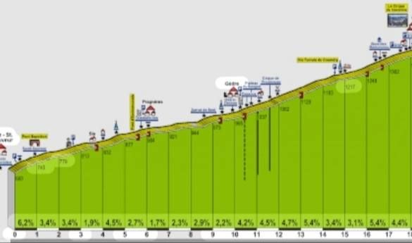 Rápido y peligroso descenso hasta Luz Saint Sauver y sin descanso toda la parte final que aunque parezca suave en su altimetría se hará larga y pesada hasta la meta, sobre todo si hace calor.