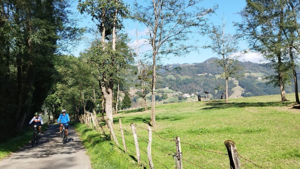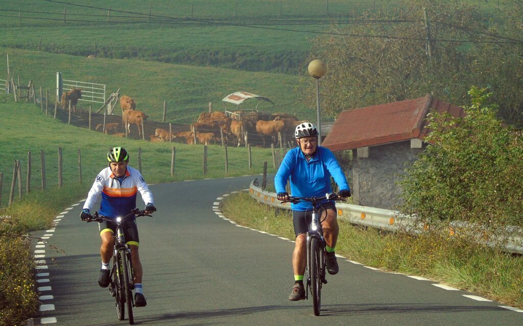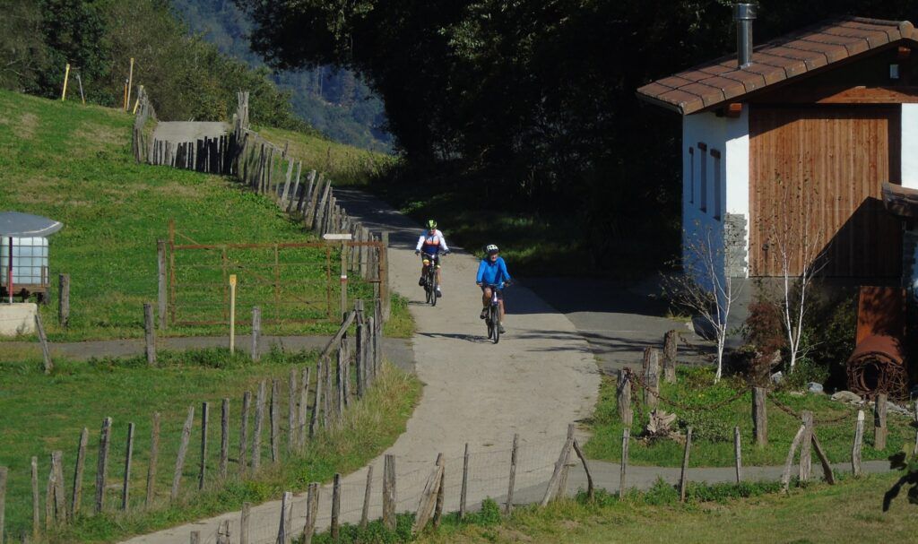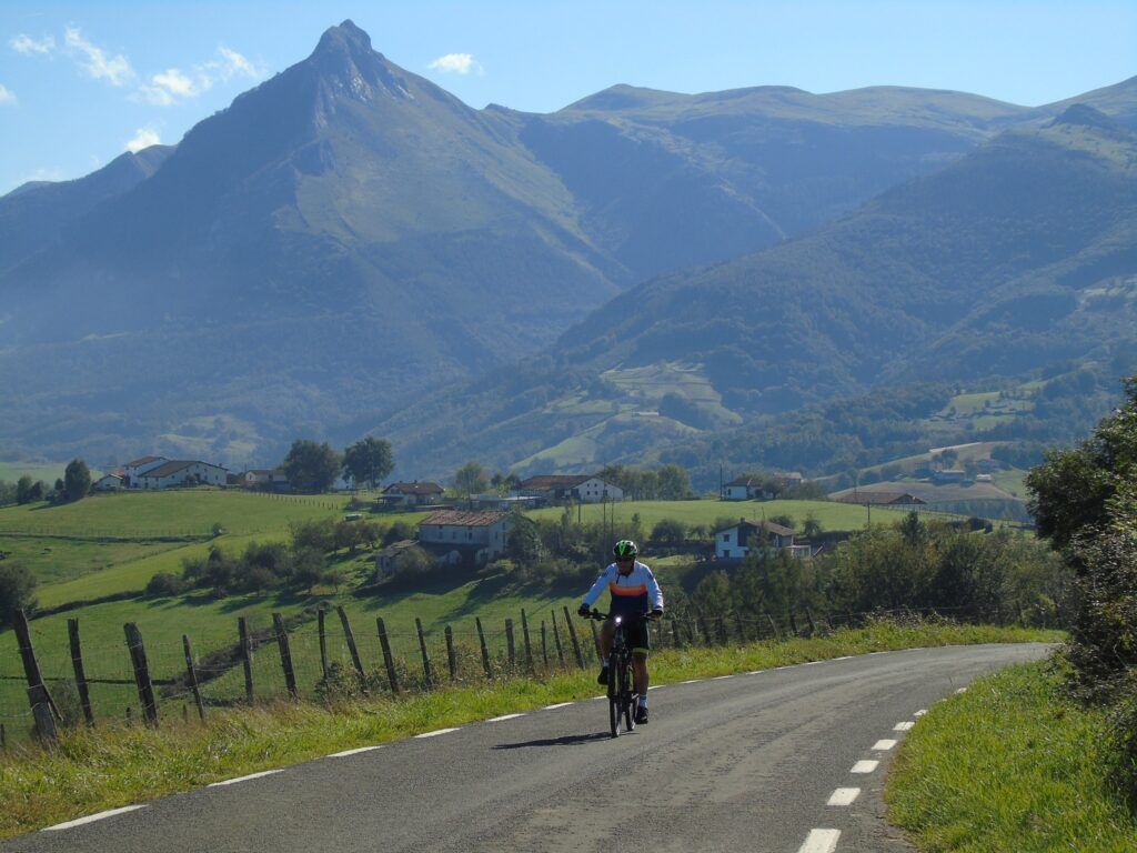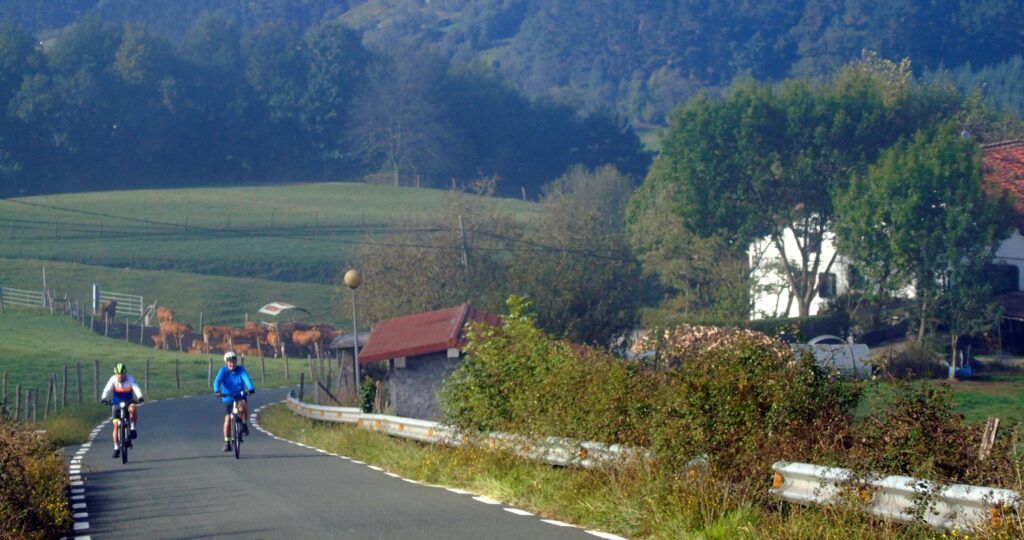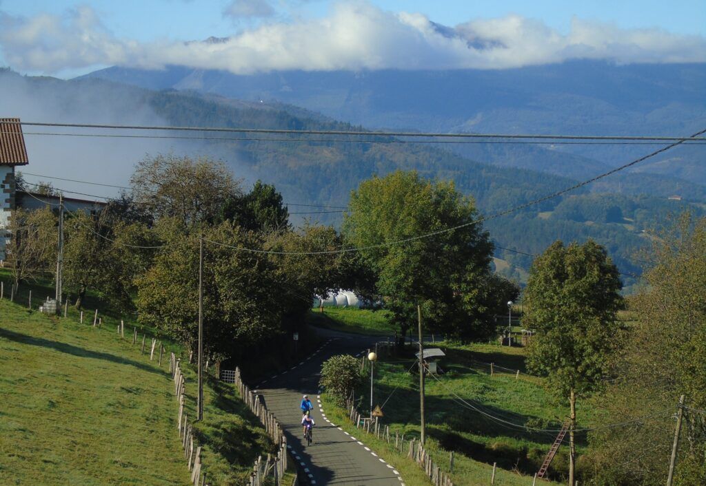 El panorama es inigualable, con los baserris y las carreteras de montaña que los comunican y que son un regalo para los amantes de la bicicleta, con rutas exigentes pero también de disfrute y contemplación. Es un entorno mágico y desde la cima se obtienen fotografías espectaculares.
