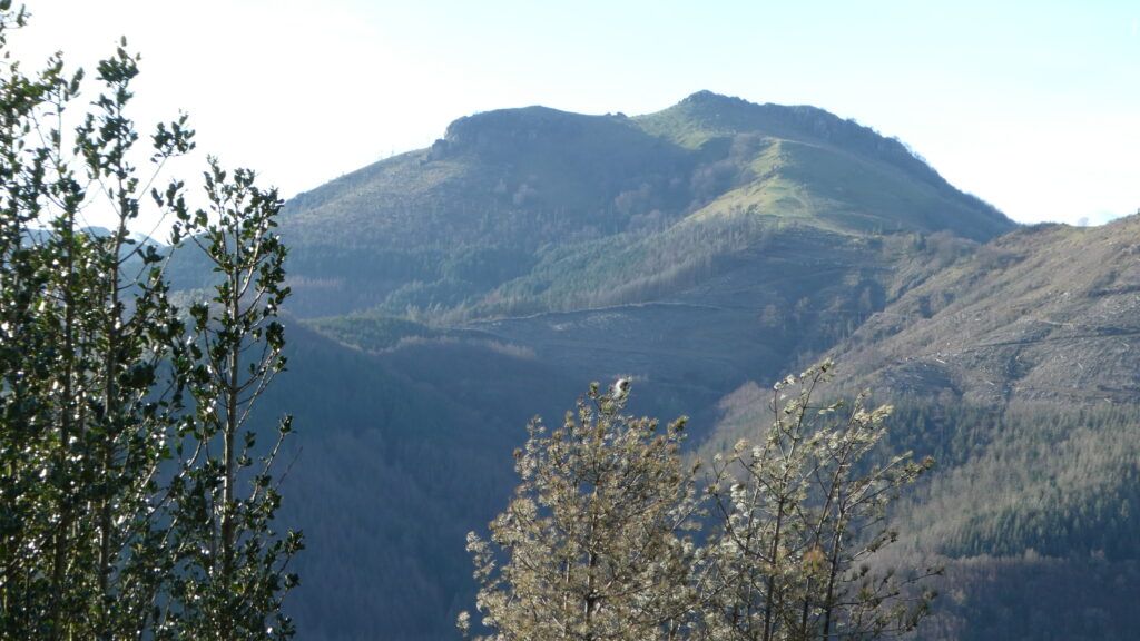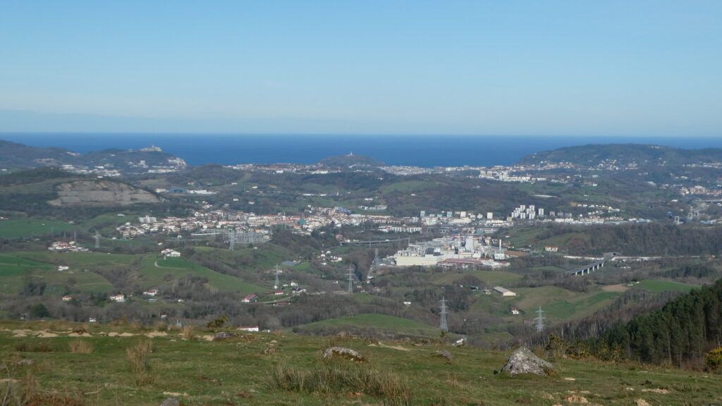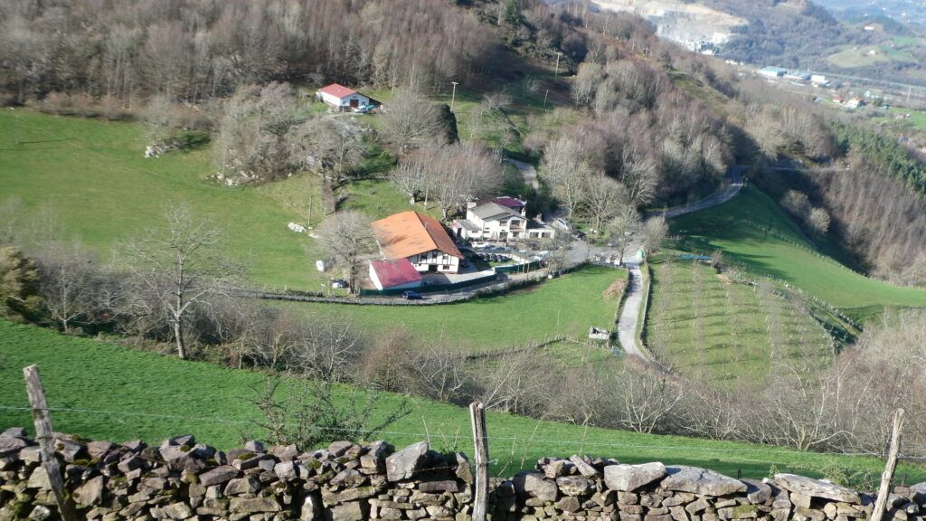 Regresamos a la pista que siguiéndola nos conduce en agradable paseo a Besabi, por Montefrío baserria, en una excelente travesía panorámica hacia el norte, cerrando el “boucle” precioso, destacando el hermoso paisaje con Donostia y los montes que rodean la capital guipuzcoana cerrando el horizonte.
