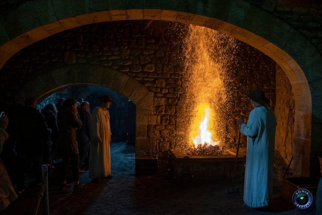 Las visitas guiadas incluyen la entrada a las galerías, así que os darán un casco y linternas para pasar por estos estrechos túneles. La visita incluye, si se desea, la serrería de Larraondo.